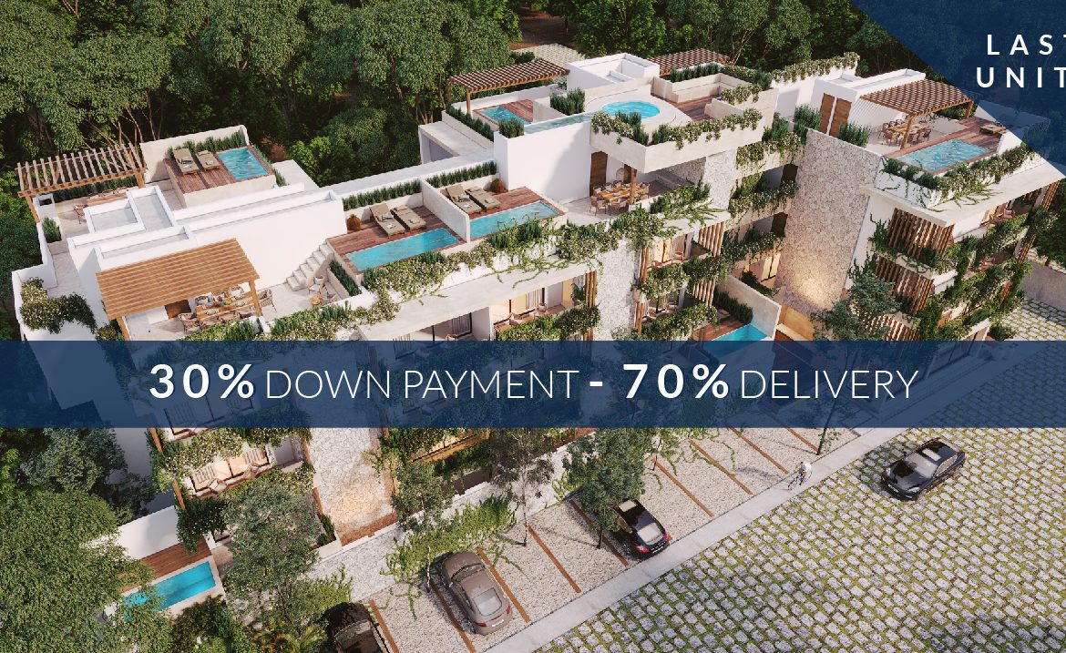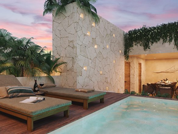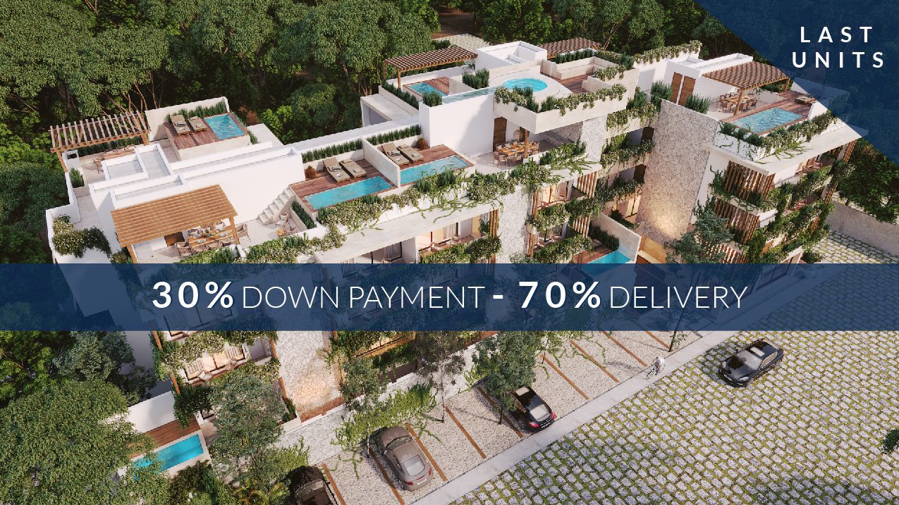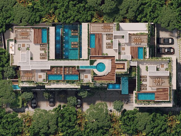 A boutique complex of 22 exclusive apartments in Tulum, with spacious 1, 2 and 3-bedroom units, as well as penthouses ranging from 73.29 m2 to 281.53. Some units have a private pool and others have swim-up access, for total enjoyment surrounded by nature.
