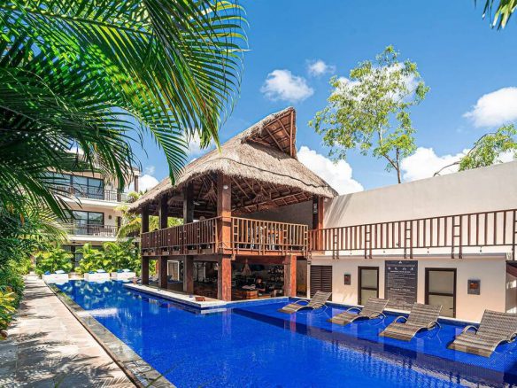 La propiedad tiene el ambiente de un pequeño hotel boutique de lujo. Es una propiedad bellamente construida, ubicada en el mejor barrio residencial de Tulum. Construido con la idea de proporcionar a los huéspedes una sensación de lujo cómodo, en un entorno tropical exuberante.