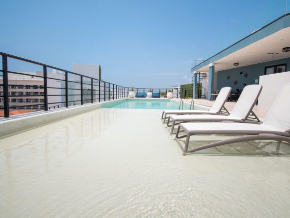 Cuenta con un concepto totalmente náutico, una alberca en forma de barco, un rooftop con imponentes vistas al mar del caribe mexicano, gimnasio en el roofgarden, cinema al aire libre, estacionamiento subterráneo, con su área de rooftop y alberca privada, cada unidad se entrega totalmente equipada.