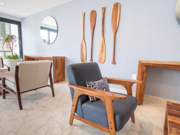 El juego de materiales, textura e iluminación enriquecen la sensación de vivir bajo el bote. El ancla como elemento escultórico en el lobby sujeta al componente principal de edificio, el barco. Adicional sus unidades se entregan amuebladas y equipadas.