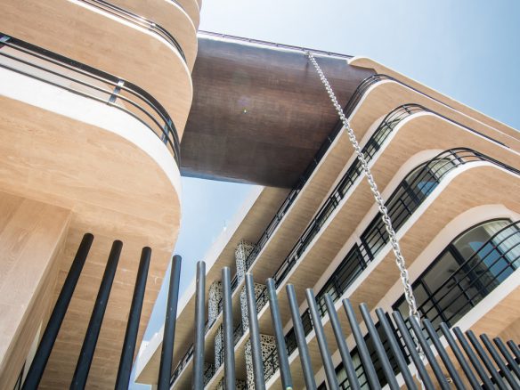 Destaca su elemento en forma de Bote que conecta ambas torres con una alberca y una pasarela de a 20m de altura.