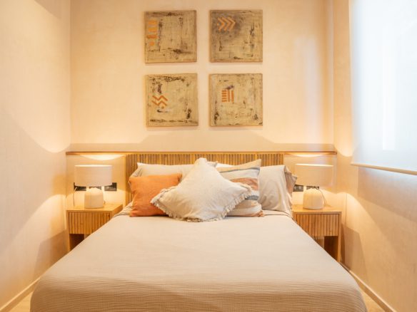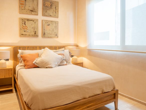 The development consists of only 14 condos. Condo GH3 has 110.96 m, is located on the ground floor with a second floor that has 2 bedrooms, 2.5 bathrooms, plus a large terrace and a swim-up pool.