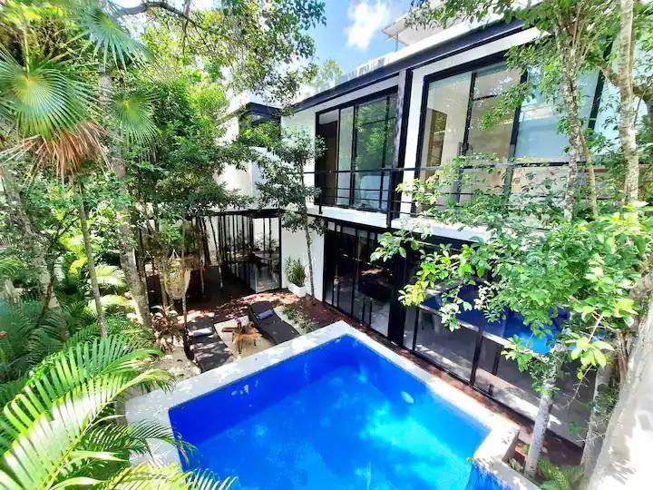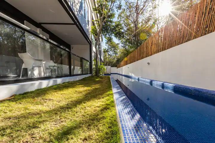 La casa 3 cuenta con alberca y zona de grill privada, 2 recamaras y 3 baños completos. La amplia unidad de 302.79 m2 totales, se entrega amueblada y equipada. De igual manera ofrece la posibilidad de construir la recámara 3 por $30,000 USD.