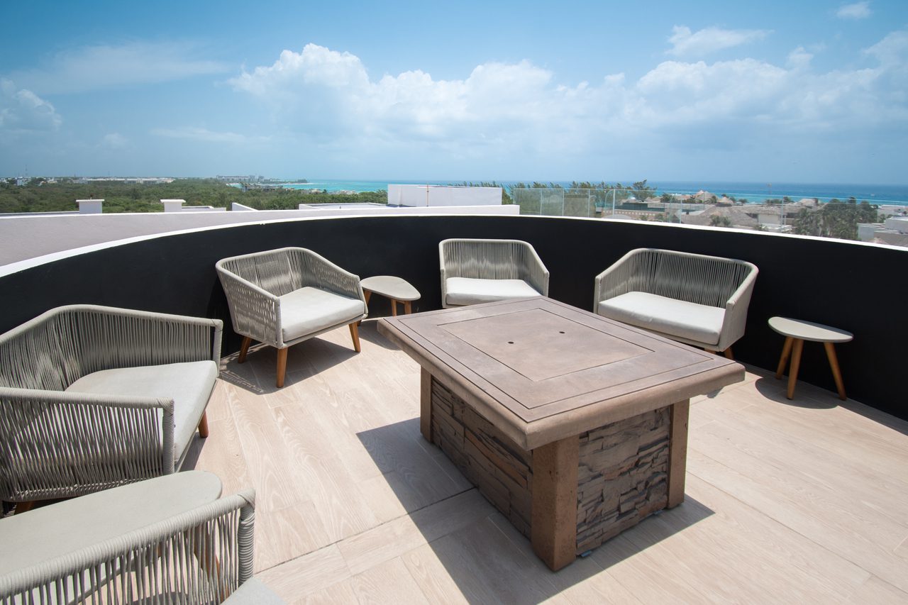 Cuenta con un concepto totalmente náutico, una alberca en forma de barco, un rooftop con imponentes vistas al mar del caribe mexicano, gimnasio en el roofgarden, cinema al aire libre, estacionamiento subterráneo, con su área de rooftop y alberca privada, cada unidad se entrega totalmente equipada.