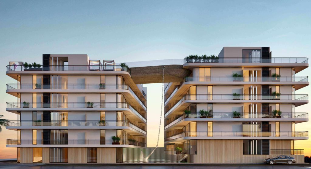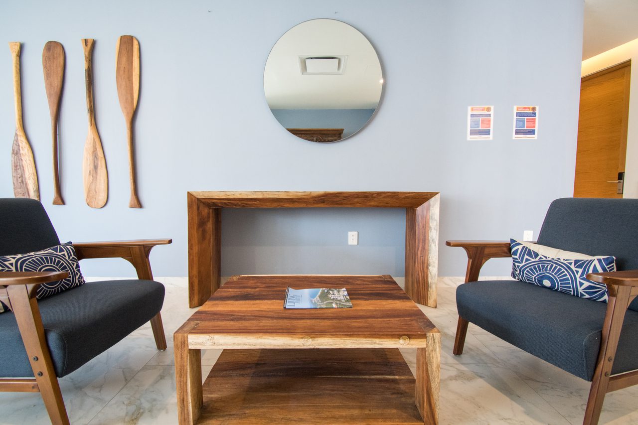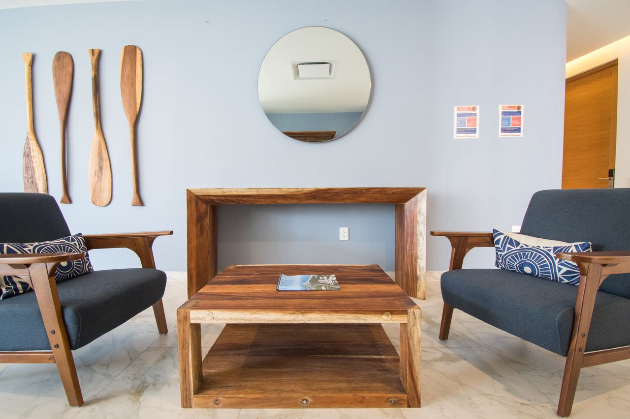 El juego de materiales, textura e iluminación enriquecen la sensación de vivir bajo el bote. El ancla como elemento escultórico en el lobby sujeta al componente principal de edificio, el barco. Adicional sus unidades se entregan amuebladas y equipadas.