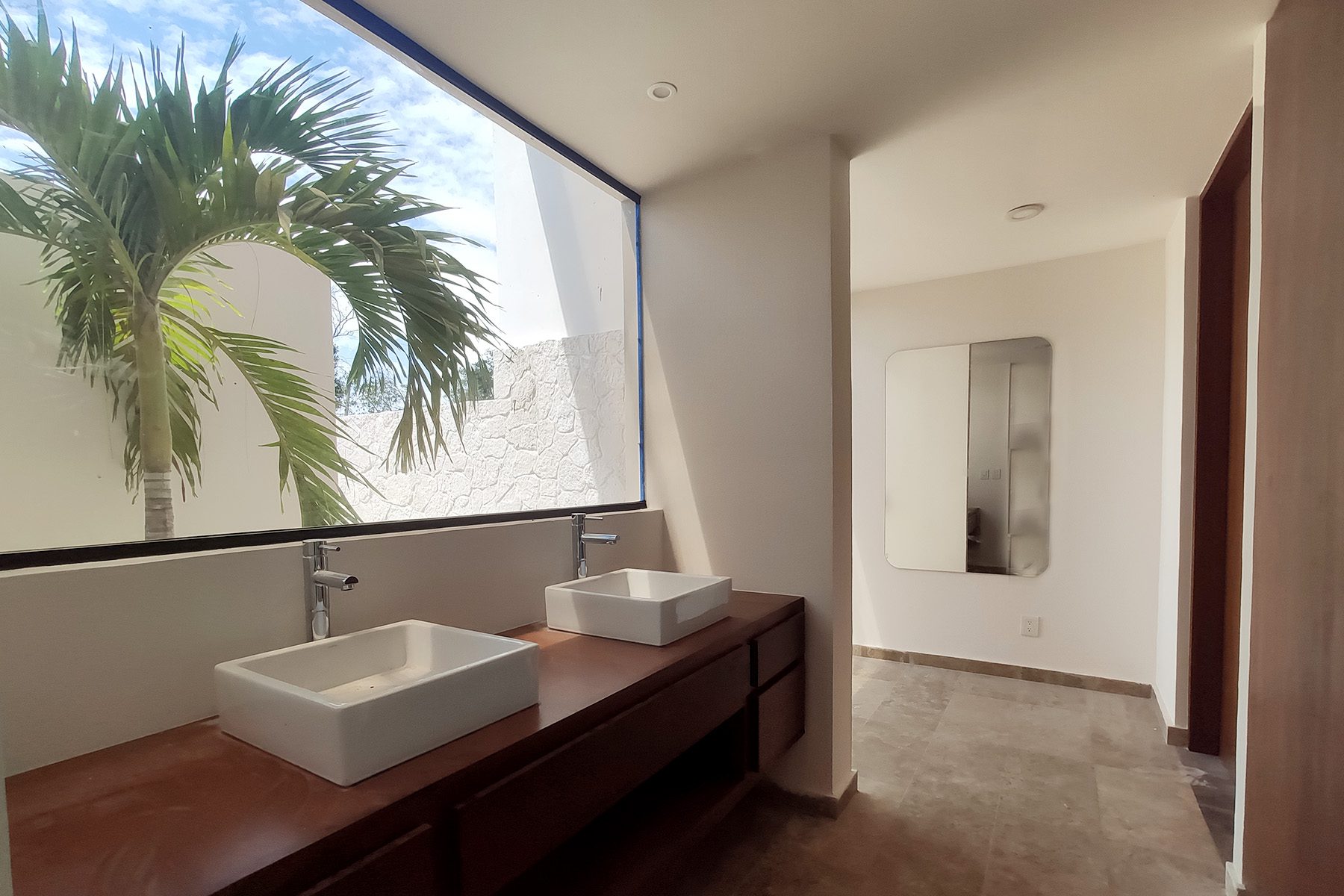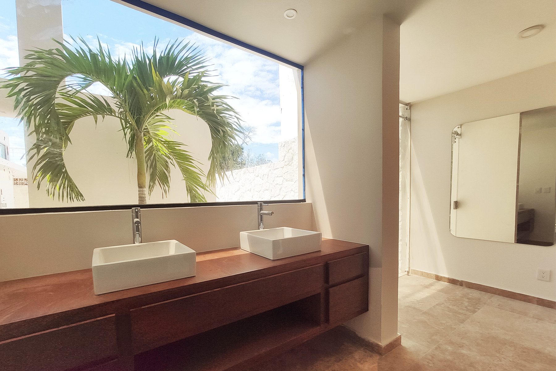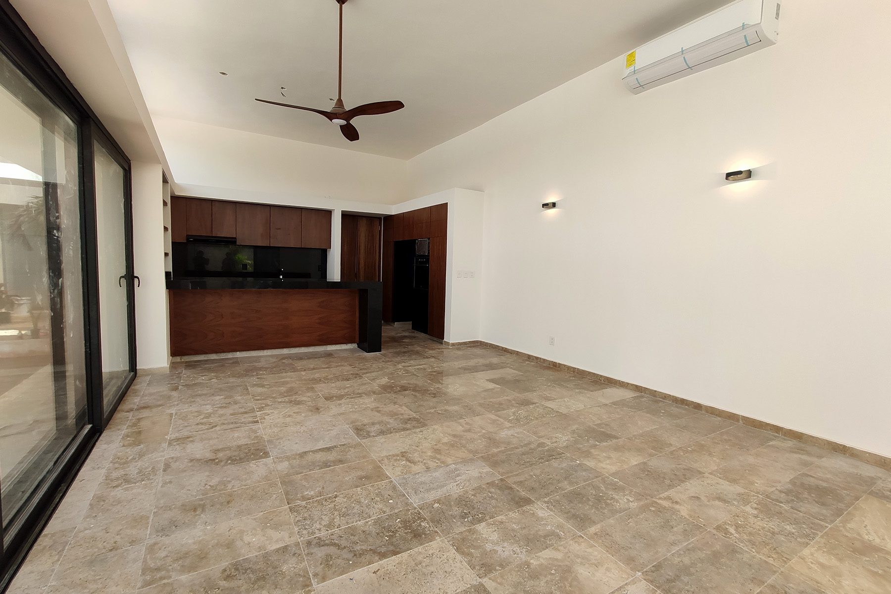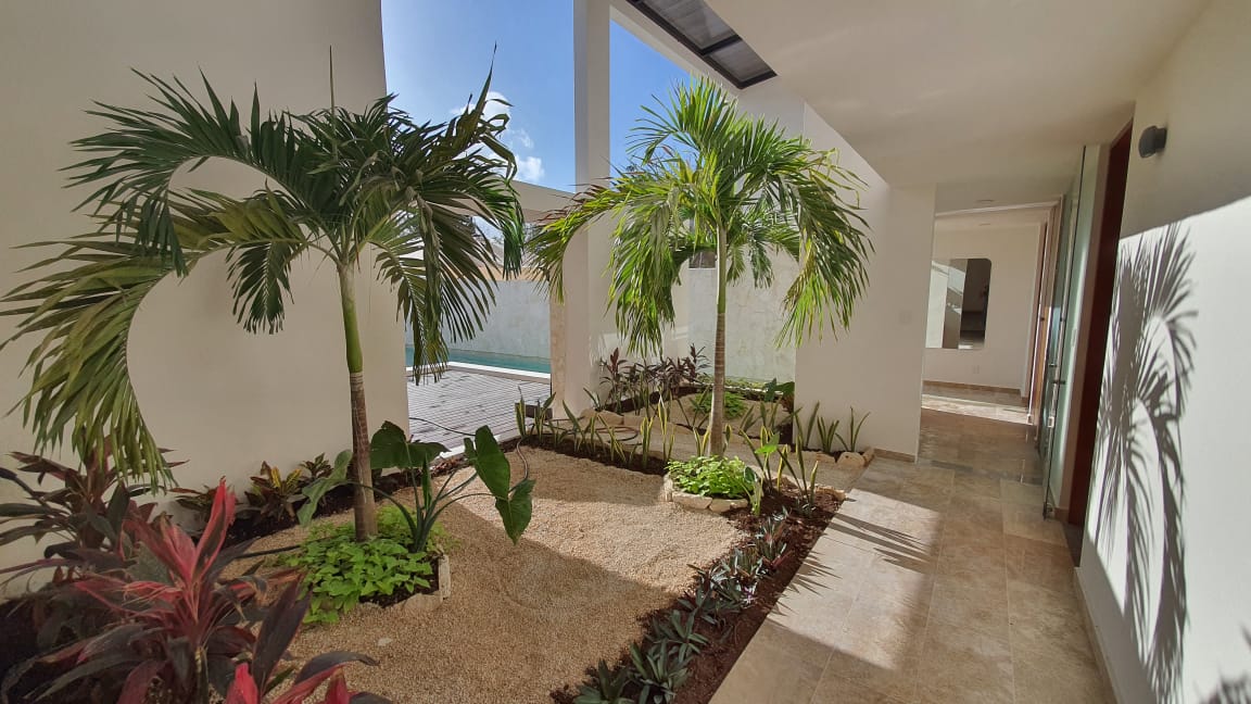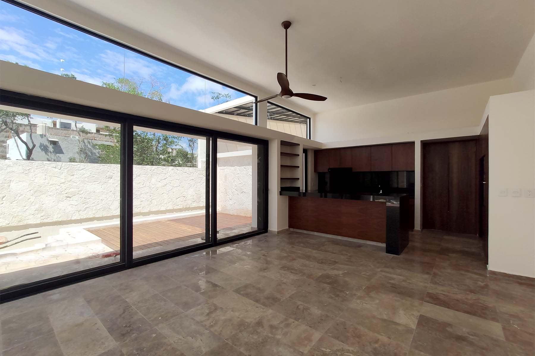 En la planta baja cuenta con una hermosa piscina con deck de madera, 2 espacios de estacionamiento, patio interior, lavandería, 3 habitaciones cada una con baño y terraza propia, sala, comedor, un baño completo de visitas, cocina abierta estilo americano. La cocina está muy bien equipada con refrigerador, horno de microondas, parrilla eléctrica, campana, horno, tarja.