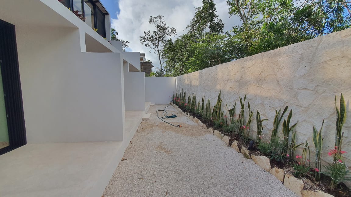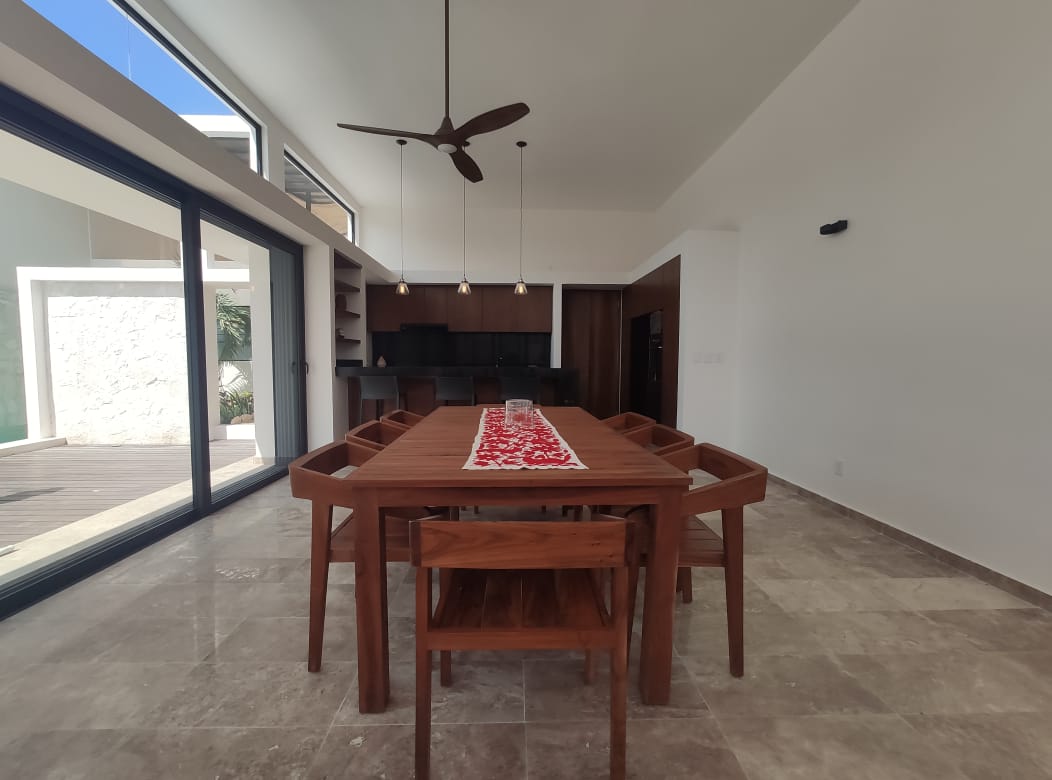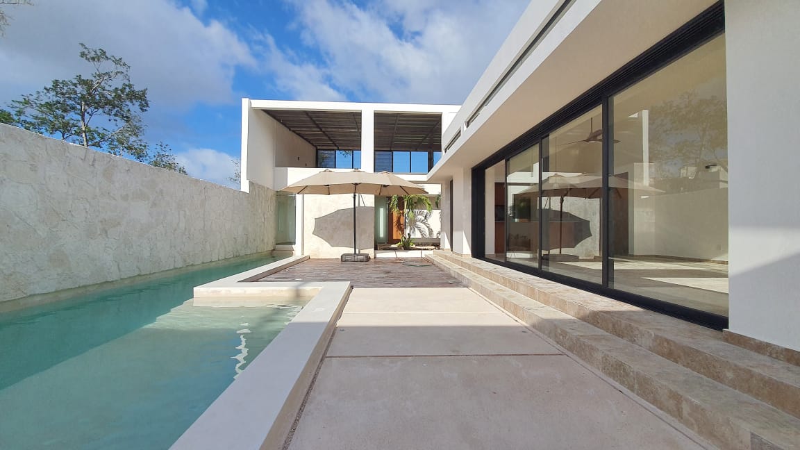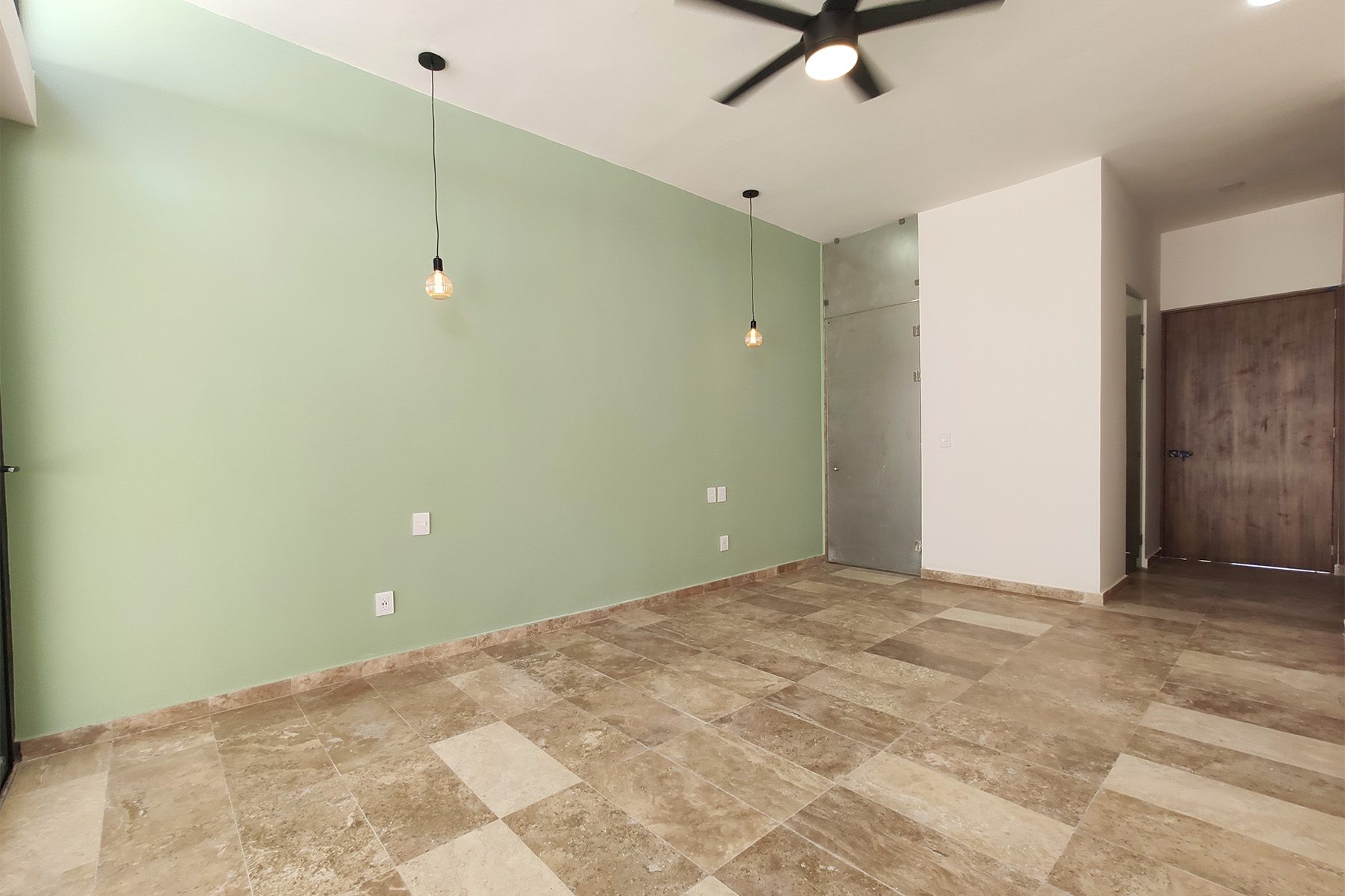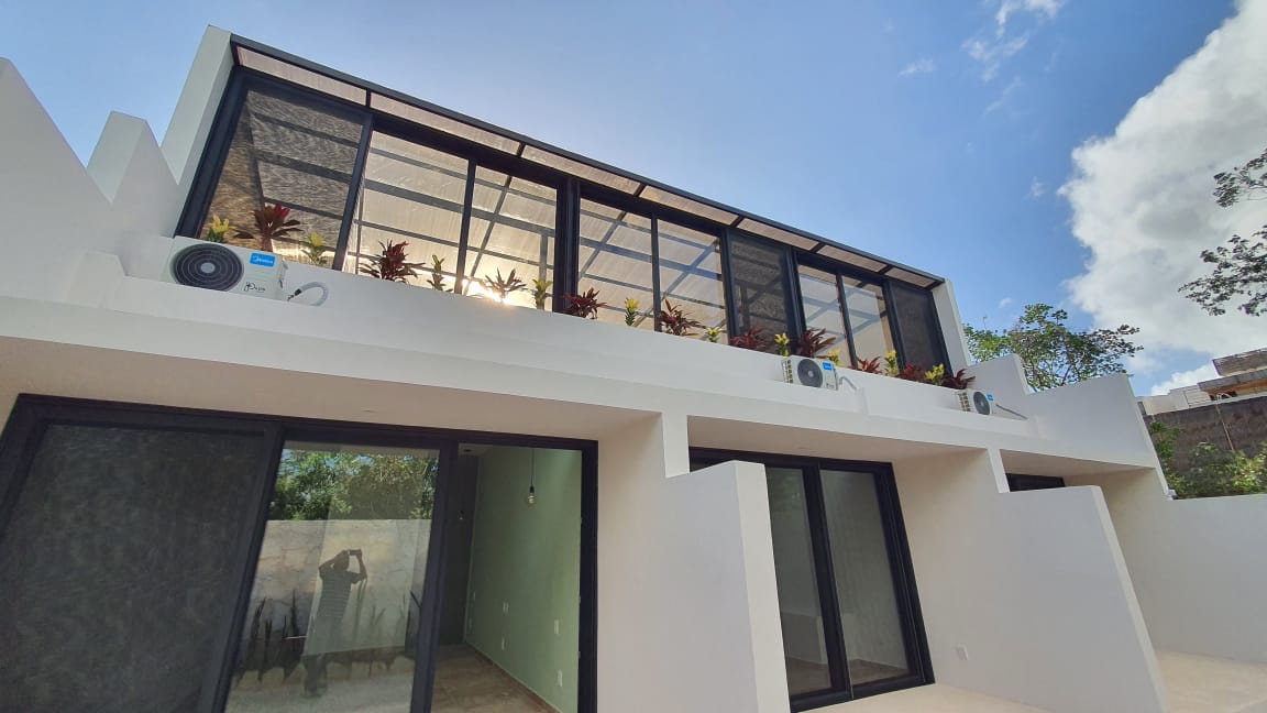 En la planta baja cuenta con una hermosa piscina con deck de madera, 2 espacios de estacionamiento, patio interior, lavandería, 3 habitaciones cada una con baño y terraza propia, sala, comedor, un baño completo de visitas, cocina abierta estilo americano. La cocina está muy bien equipada con refrigerador, horno de microondas, parrilla eléctrica, campana, horno, tarja.