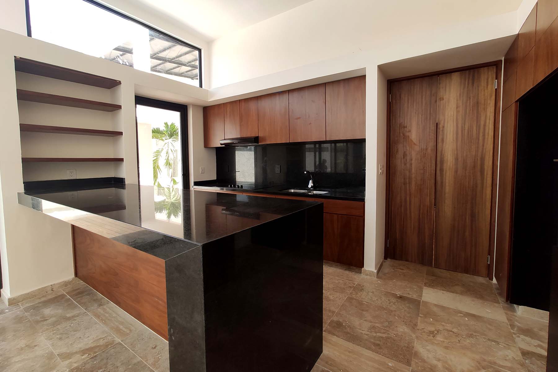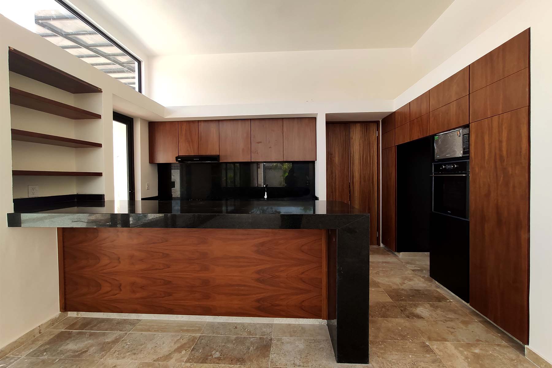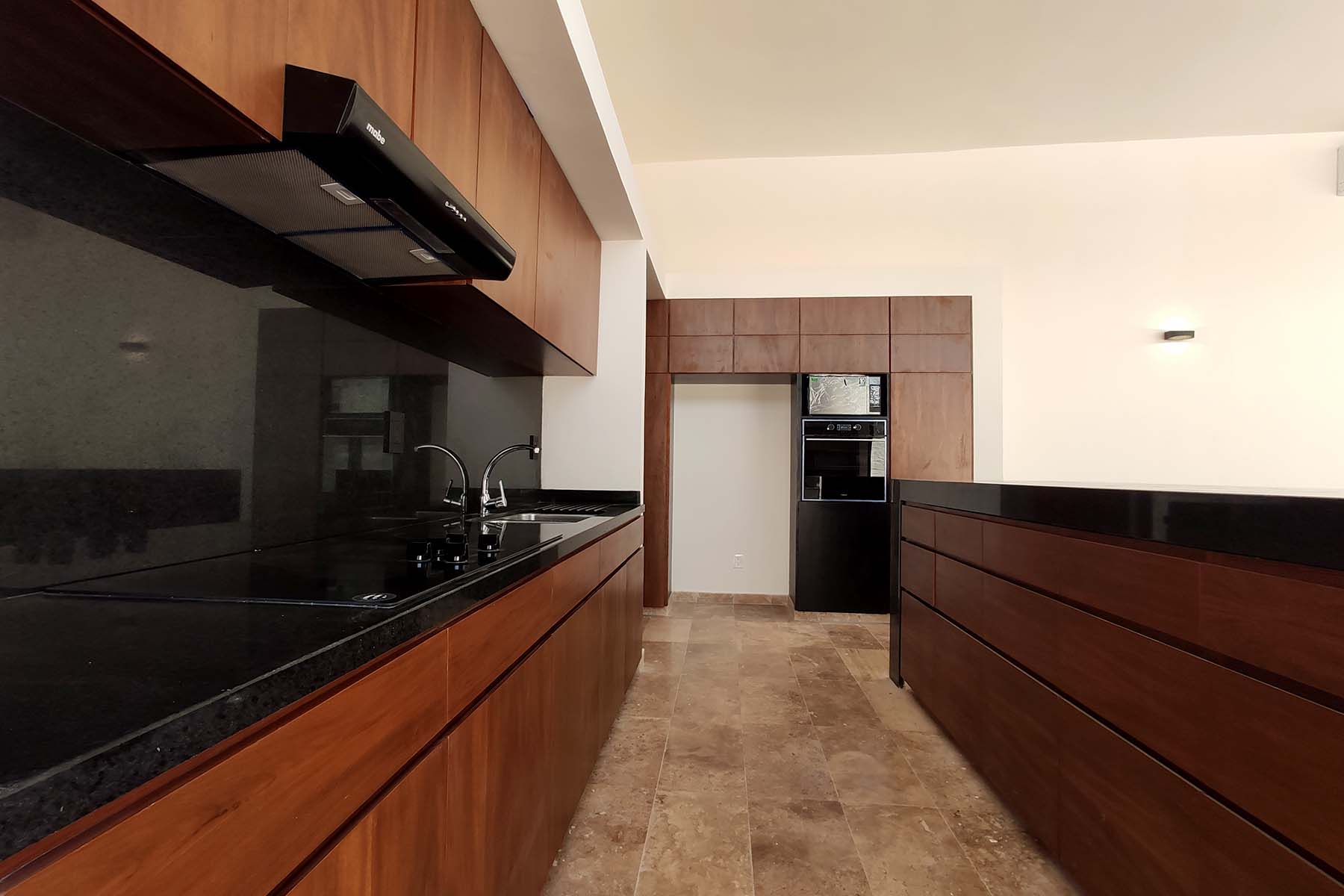 - Cocina, clósets y muebles de baño enchapados con madera Tzalam